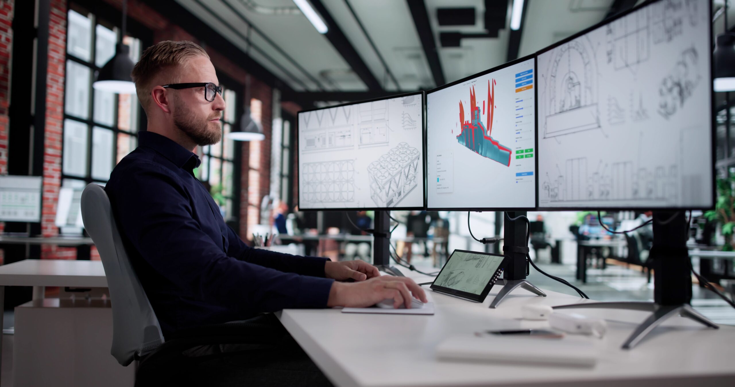 Young,Caucasian,Man,Using,Computer,To,Design,Mechanical,Product,In